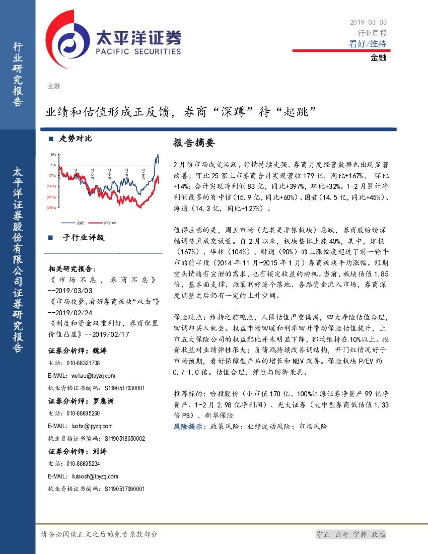 太平洋证券:金融行业周报:业绩和估值形成正反馈,券商“深蹲”待“起跳”.pdf