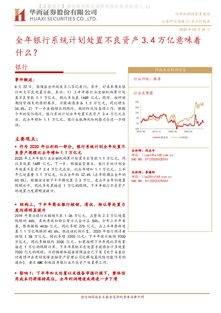 华西证券:银行行业点评报告:全年银行系统计划处置不良资产3.4万亿意味着什么?.pdf