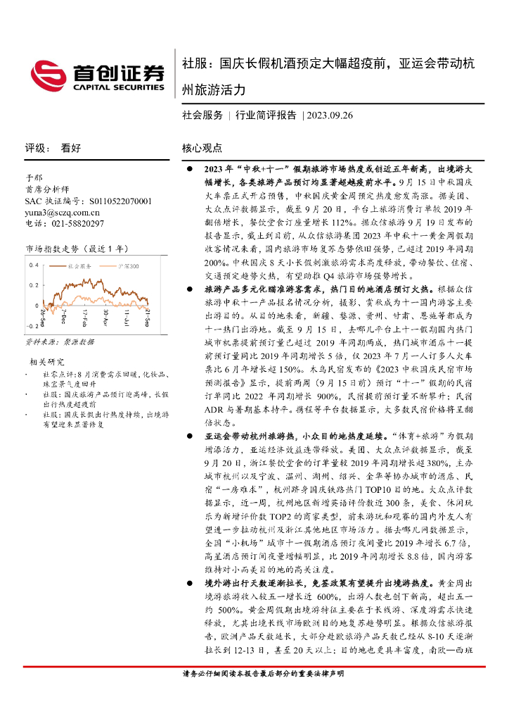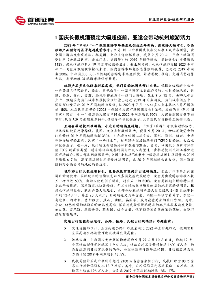 首创证券:社服:国庆长假机酒预定大幅超疫前,亚运会带动杭州旅游活力.pdf