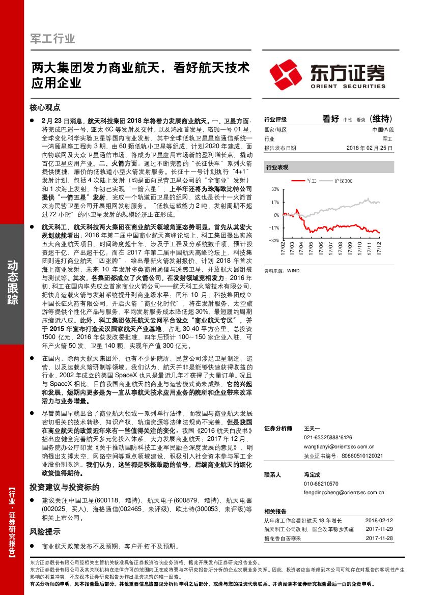 东方证券:军工行业动态跟踪:两大集团发力商业航天,看好航天技术应用企业.pdf