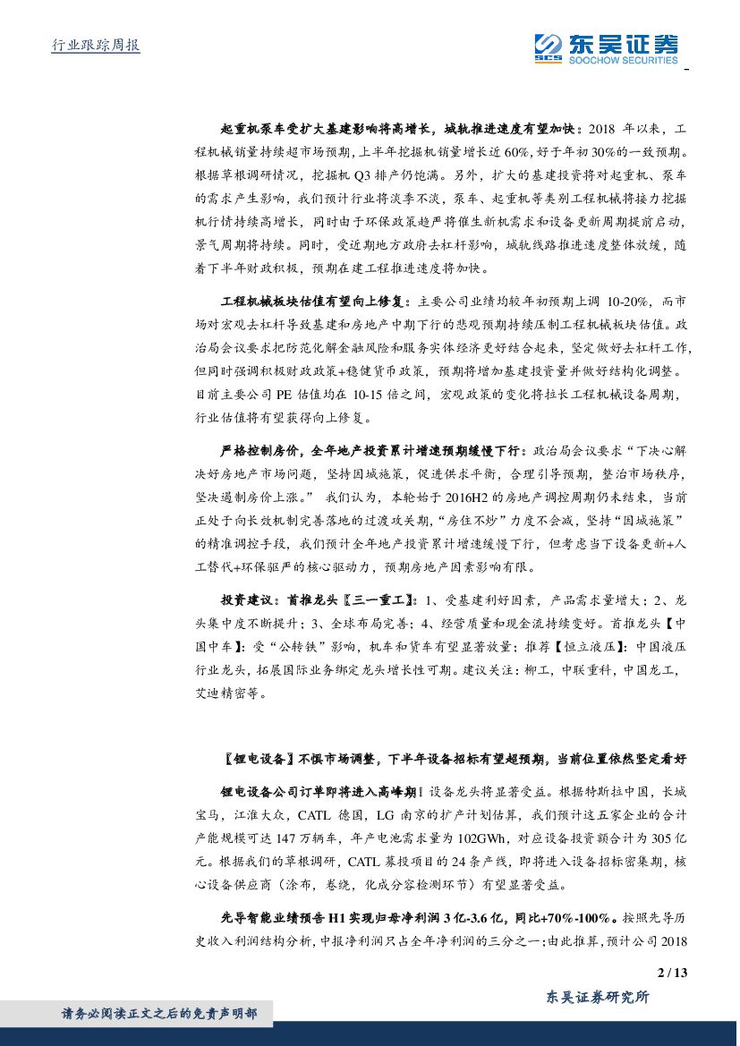 东吴证券:机械设备:油服、工程机械龙头业绩超预期,先进制造处于价值区间.pdf