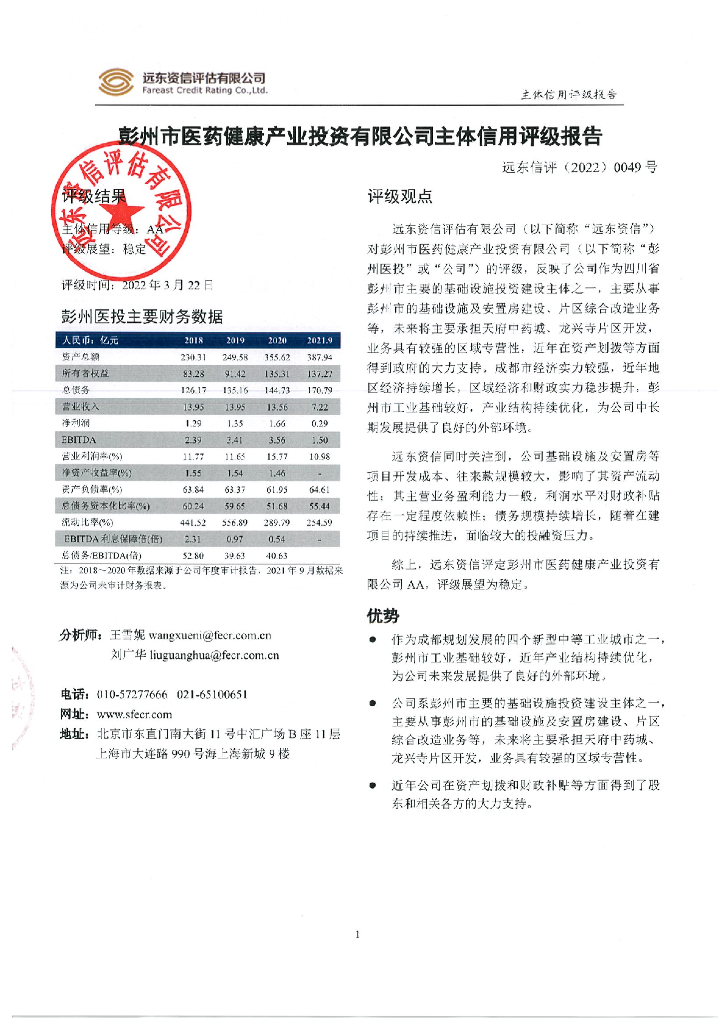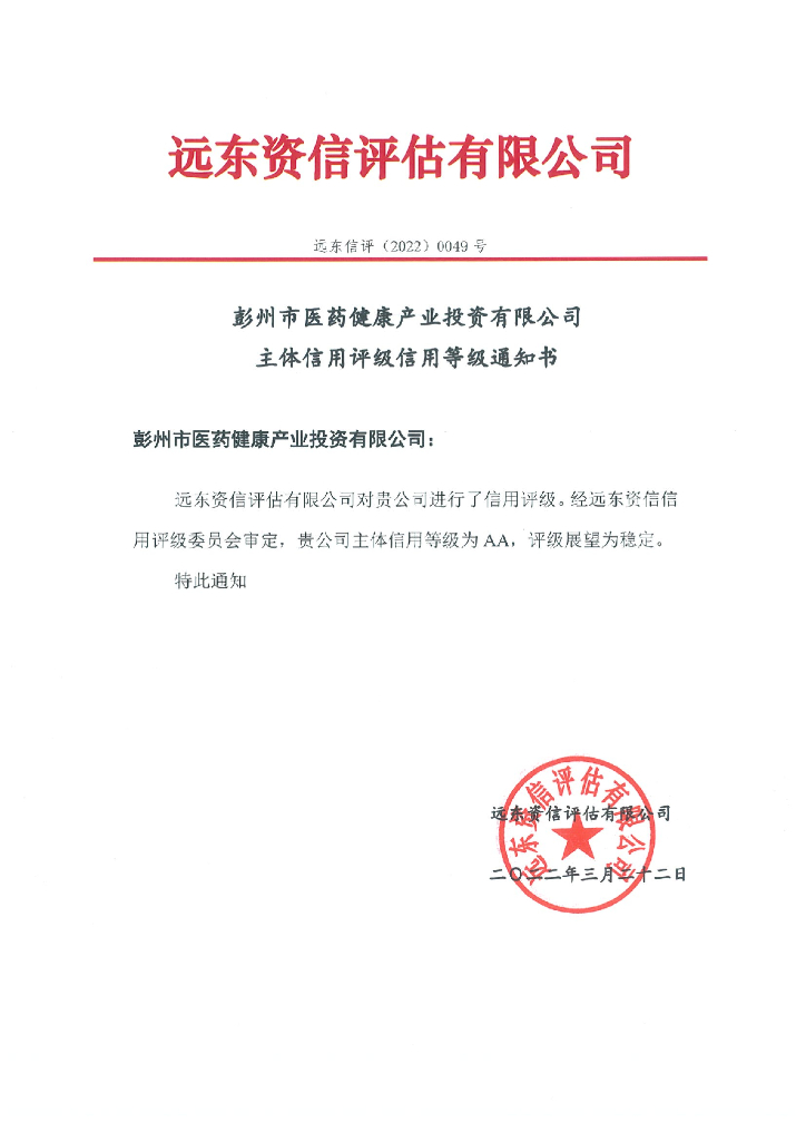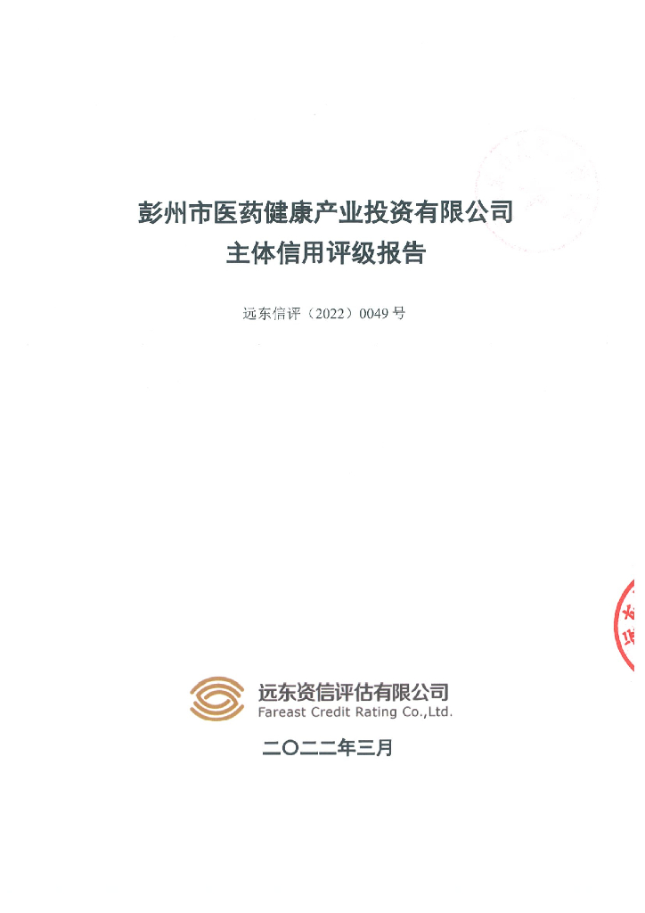 远东:彭州市医药健康产业投资有限公司主体信用评级.pdf