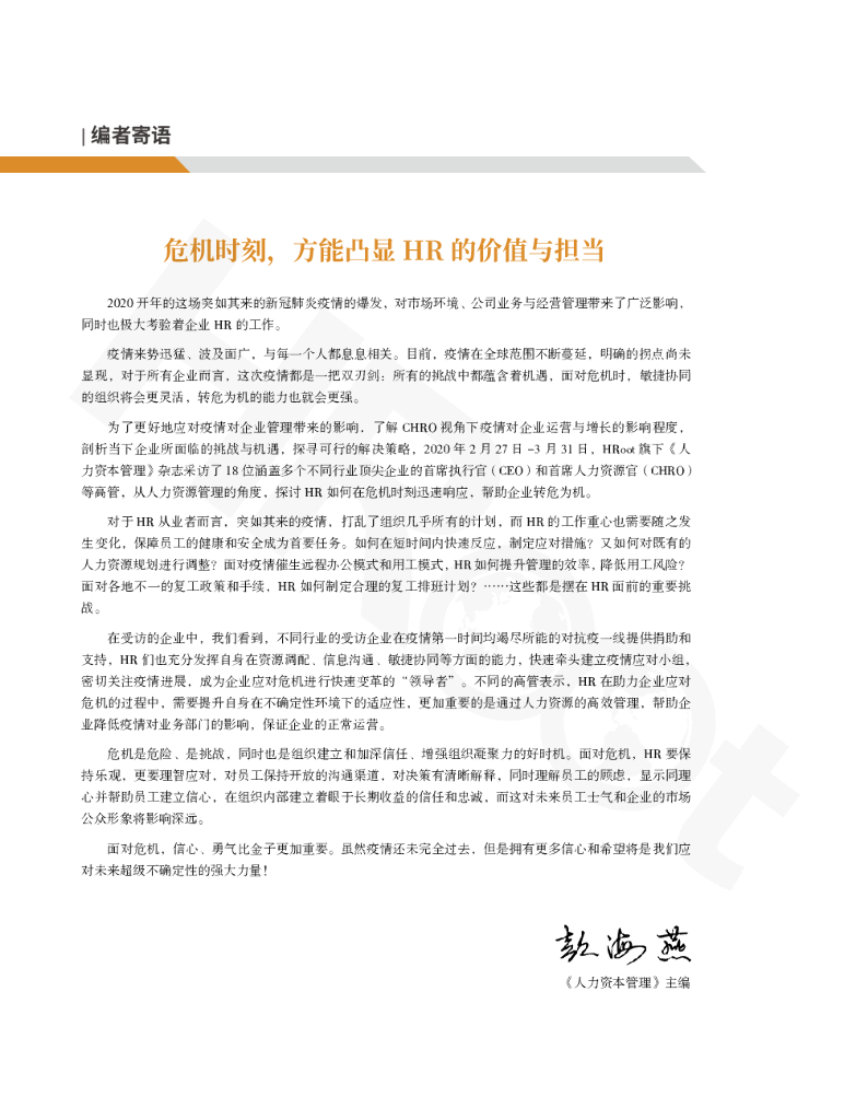 《人力资本管理》疫情访谈特刊-前行2020:18位首席人力资源官(CHRO)给HR的危机应对指南.pdf