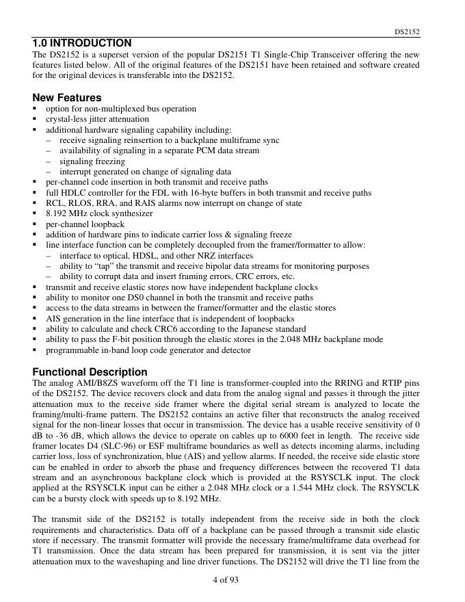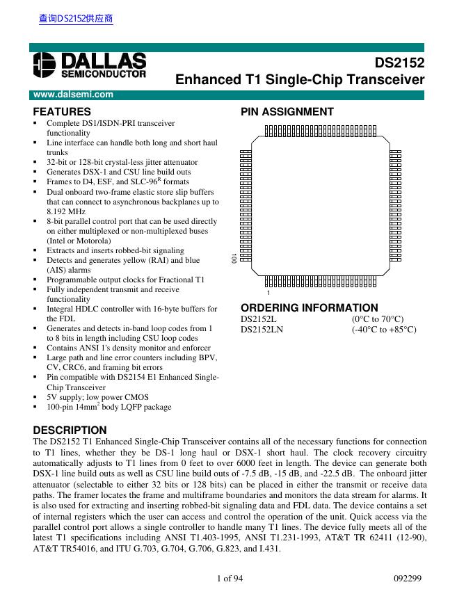 DALLAS DS2152 Enhanced T1 Single-Chip Transceiver 数据手册.pdf