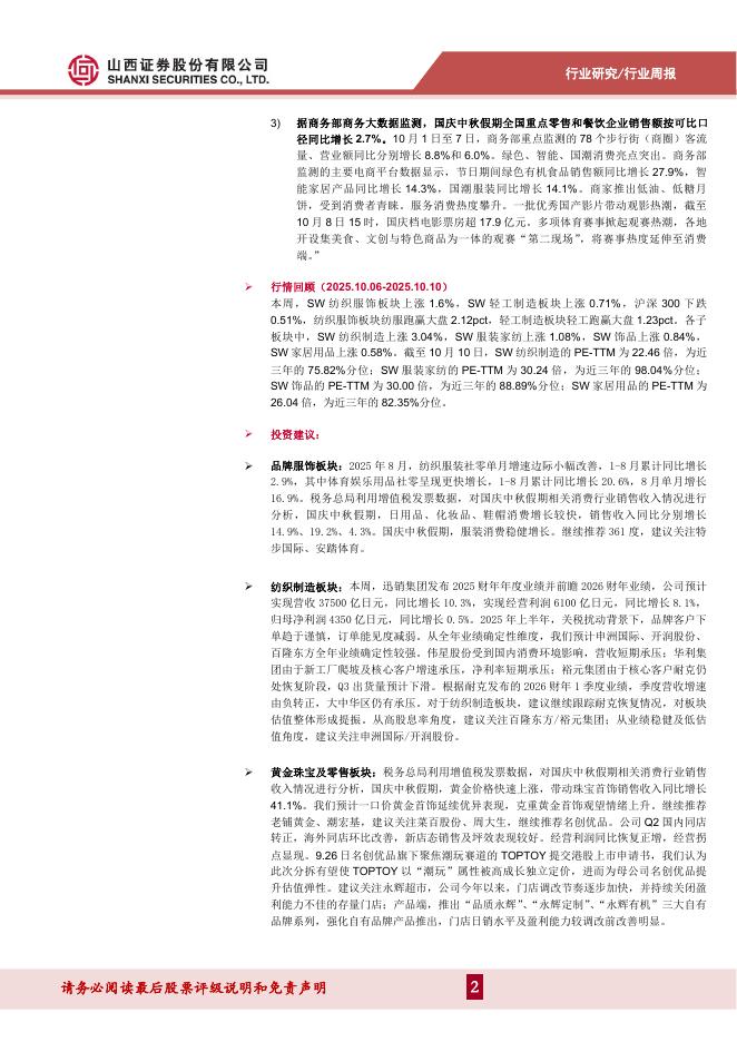山西证券:纺织服装行业周报:国庆中秋假期国内消费市场稳健增长,迅销发布FY2025业绩.pdf
