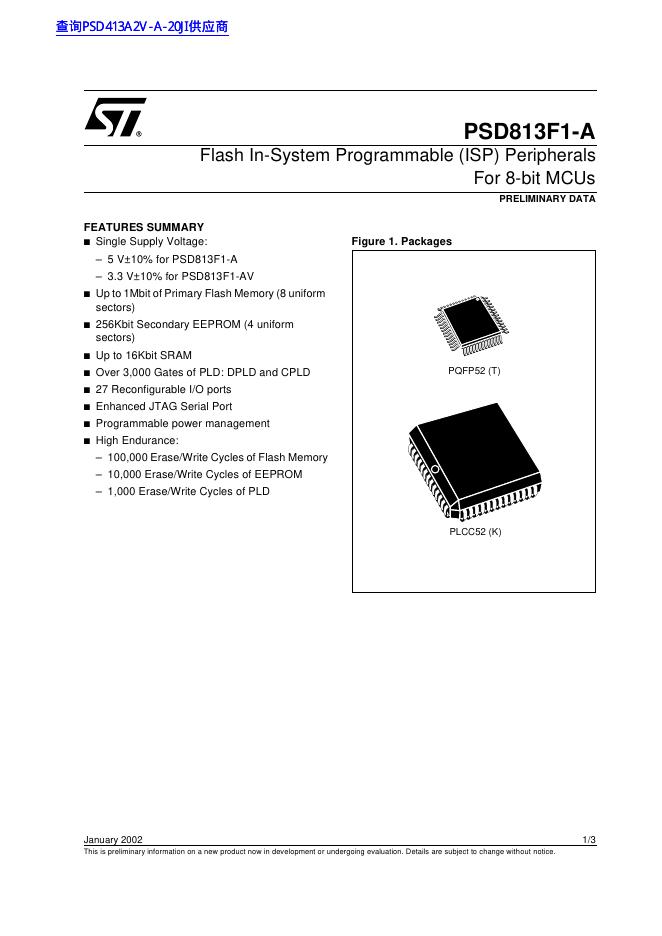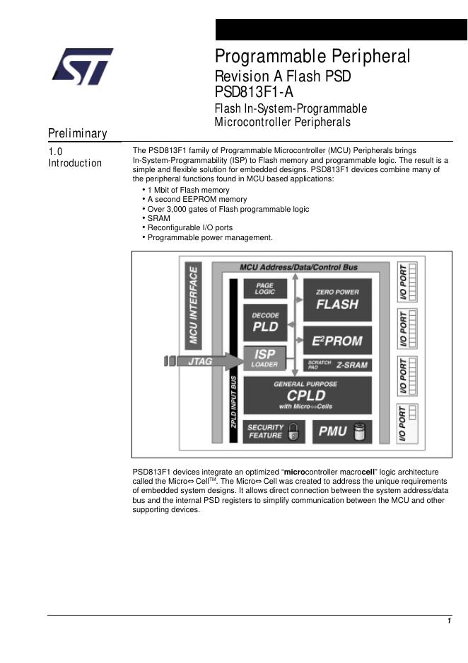 ST PSD813F1-A Flash In-System Programmable (ISP) Peripherals For 8-bit MCUs 数据手册.pdf