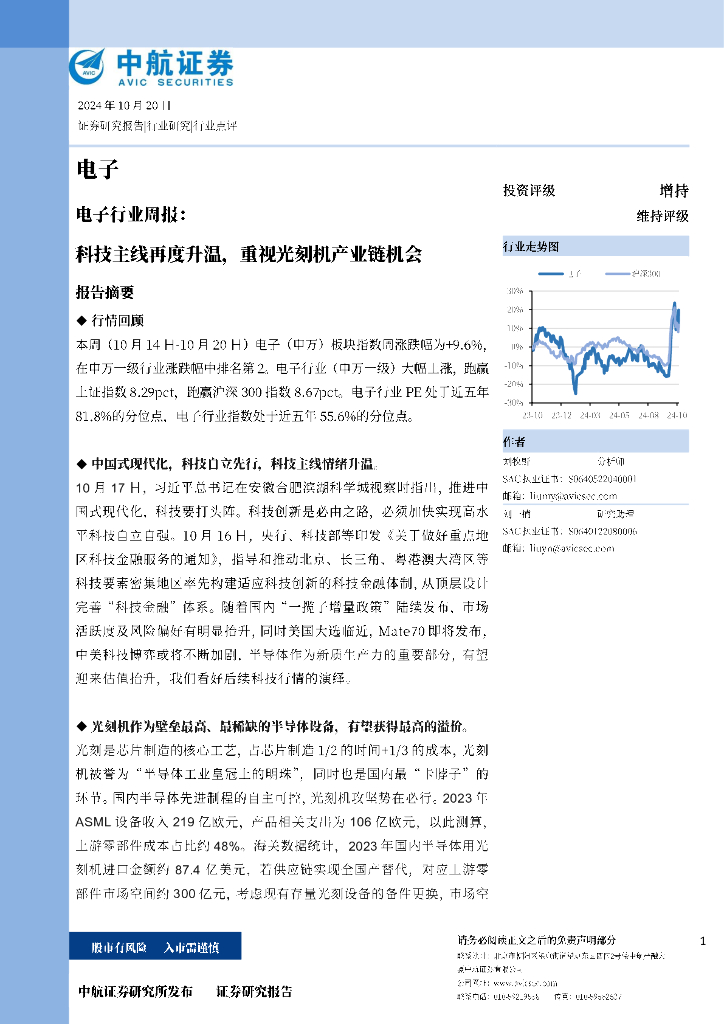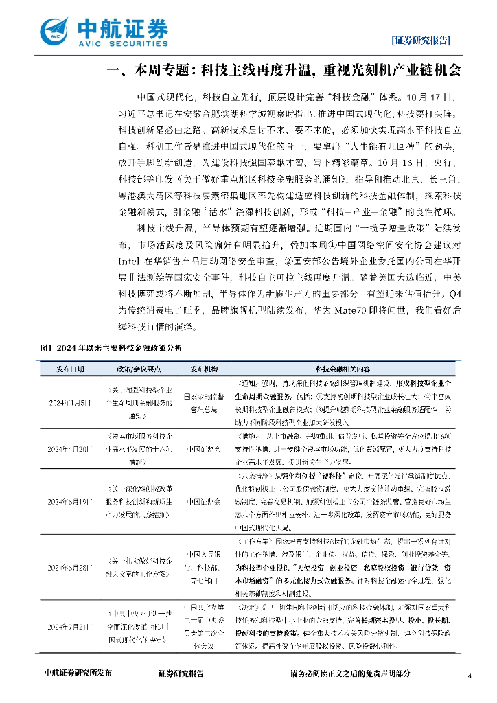 中航证券:电子行业周报:科技主线再度升温,重视光刻机产业链机会.pdf