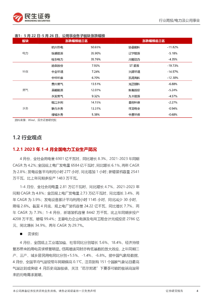民生证券:公用事业行业周报(2023年第21周):风光“狂飙”,水网建设推动水务产业发展.pdf
