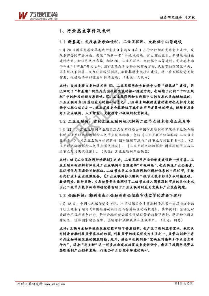 万联证券:计算机行业周观点:重点关注工业互联网产业发展的投资机会.pdf