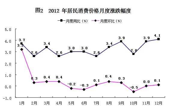 全年居民消费价格比上年上涨3.2%,其中食品价格上涨5.2%。固定资产投资价格上涨0.6%。工业生产者出厂价格下降2.2%。工业生产者购进价格下降0.8%。农产品生产者价格下降0.6%。农业生产资料价格上涨3.9%。