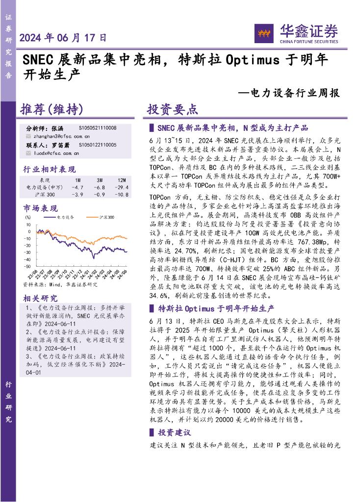 华鑫证券:电力设备行业周报:SNEC展新品集中亮相,特斯拉Optimus于明年开始生产.pdf