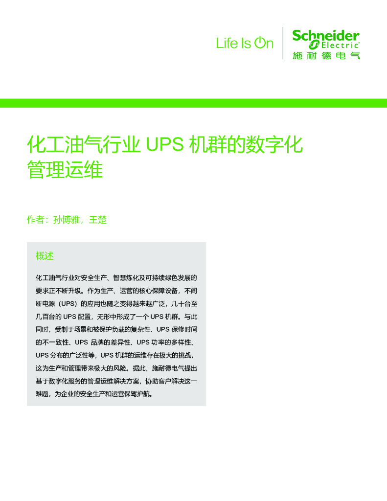 施耐德电气:化工油气行业应用白皮书——化工油气行业UPS机群的数字化管理运维服务.pdf