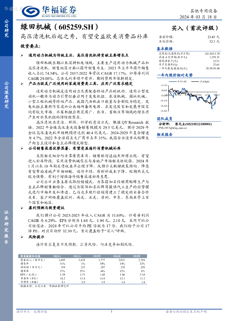 华福证券:绿田机械(605259)-高压清洗机后起之秀,有望受益欧美消费品补库.pdf