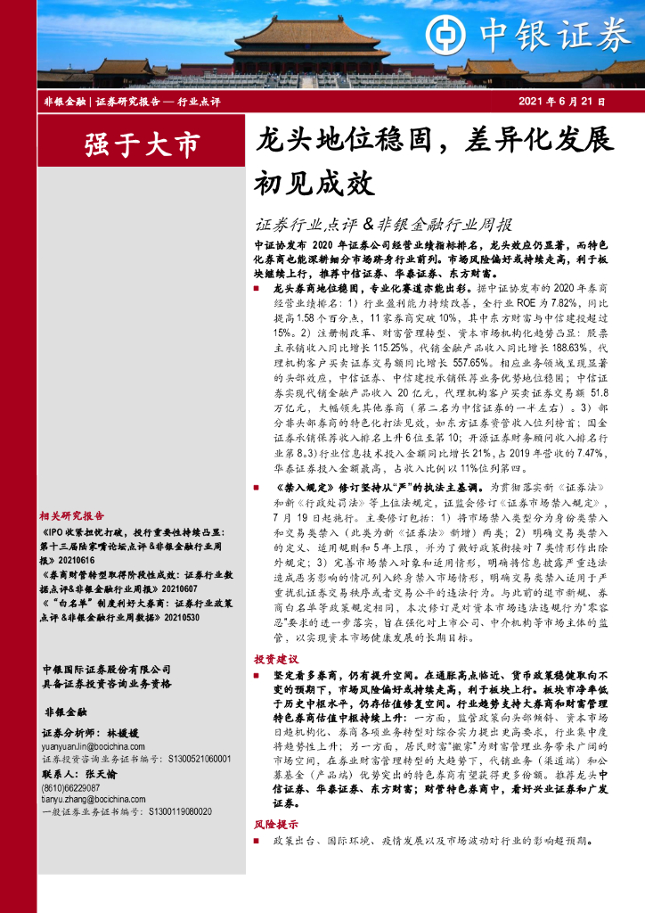 中银证券:证券行业点评&非银金融行业周报:龙头地位稳固,差异化发展初见成效.pdf