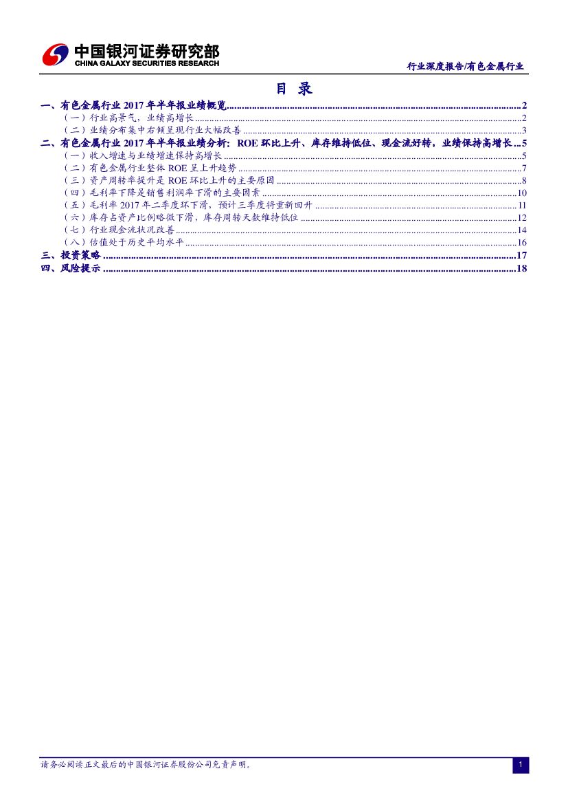 中国银河:有色金属行业2017年半年报业绩回顾:业绩辉煌且不是顶点,三季度更值得期待.pdf