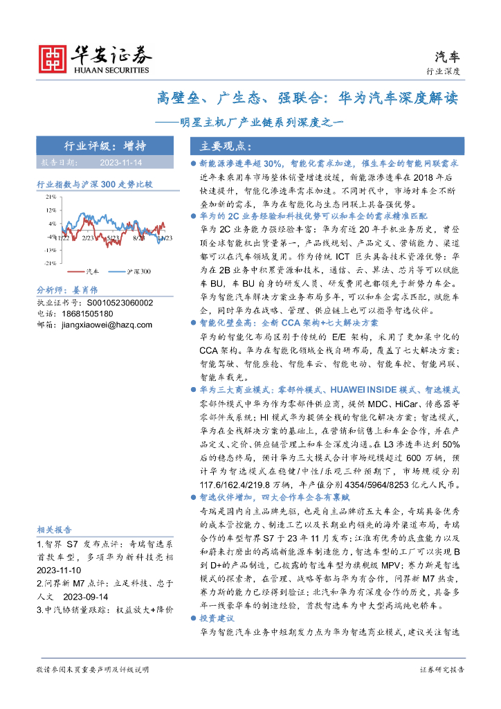 华安证券:明星主机厂产业链系列深度之一:华为汽车深度解读-高壁垒、广生态、强联合.pdf