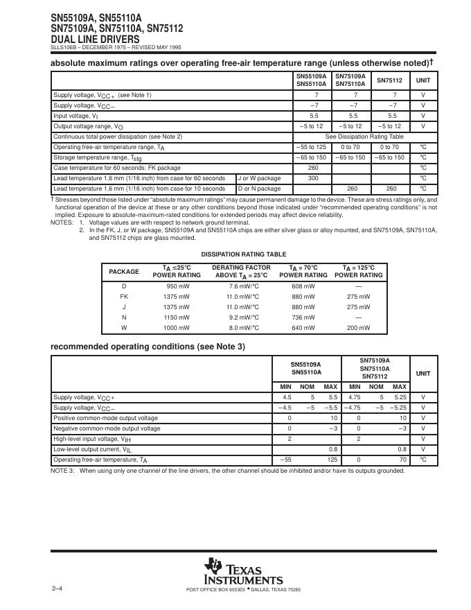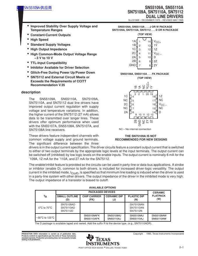 TEXAS INSTRUMENTS SN55109A/SN55110A/SN75109A/SN75110A/SN75112 数据手册.pdf