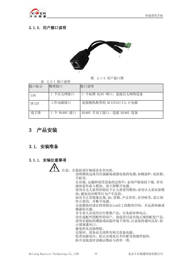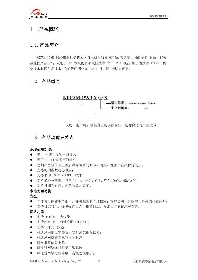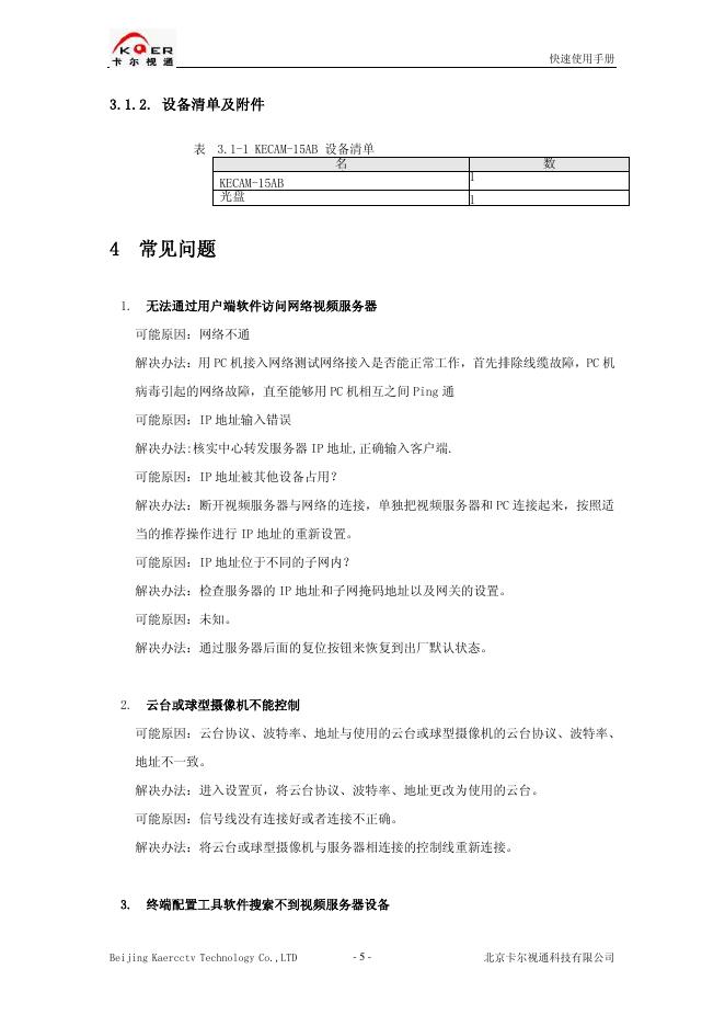 北京卡尔视通科技有限公司 KECAM-15AB 网络摄像机 快速使用手册.pdf