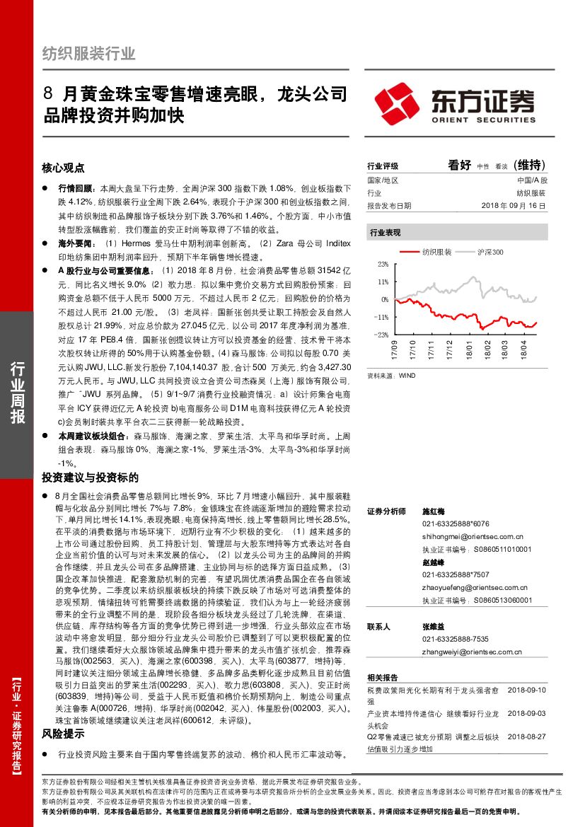东方证券:纺织服装行业周报:8月黄金珠宝零售增速亮眼,龙头公司品牌投资并购加快.pdf
