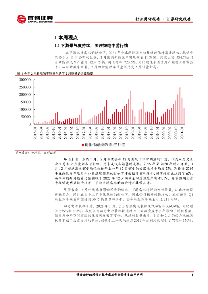 首创证券:电气设备行业简评报告:下游景气度持续,关注锂电中游行情.pdf