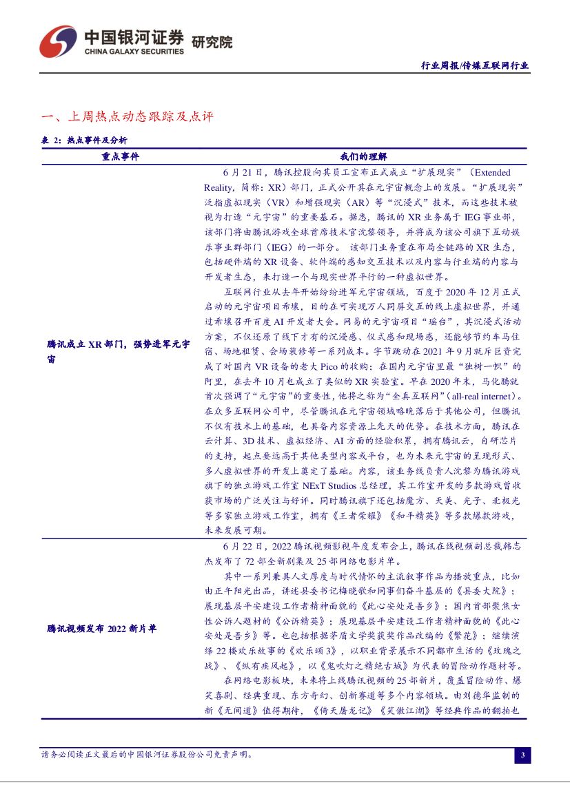 中国银河:传媒互联网行业周报:2022腾讯视频影视片片单发布,成立“扩展现实”XR新部门.pdf