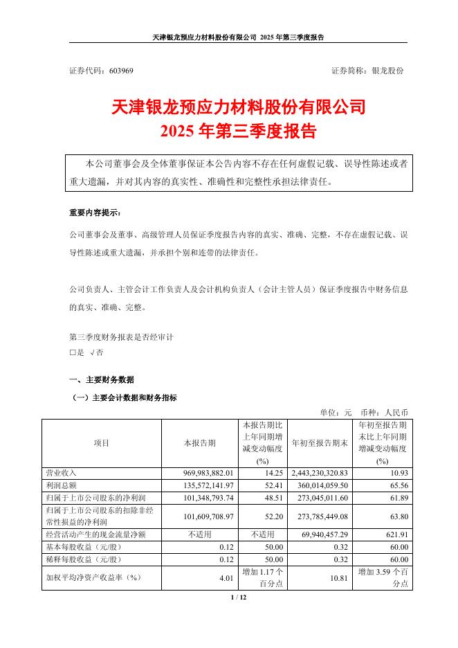 603969-银龙股份:天津银龙预应力材料股份有限公司2025年第三季度报告.pdf