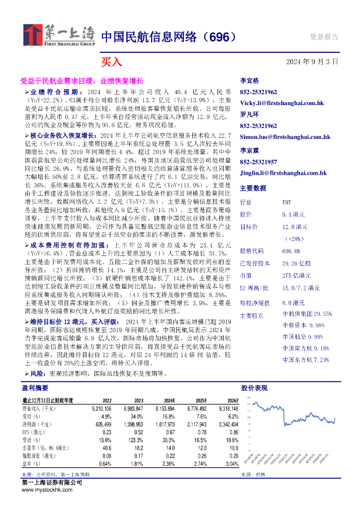 第一上海证券:中国民航信息网络(00696)港股公司研究报告-受益于民航业需求回暖,业绩恢复增长.pdf