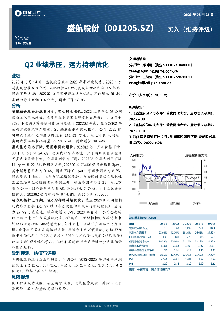 国金证券:盛航股份(001205)-Q2业绩承压,运力持续优化.pdf