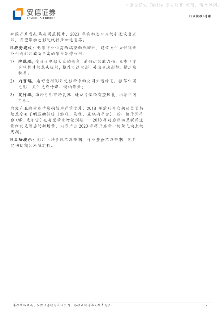 安信证券:传媒:春节档强劲复苏,叠加政策转暖,内容产业23年将开启新一轮向上周期.pdf