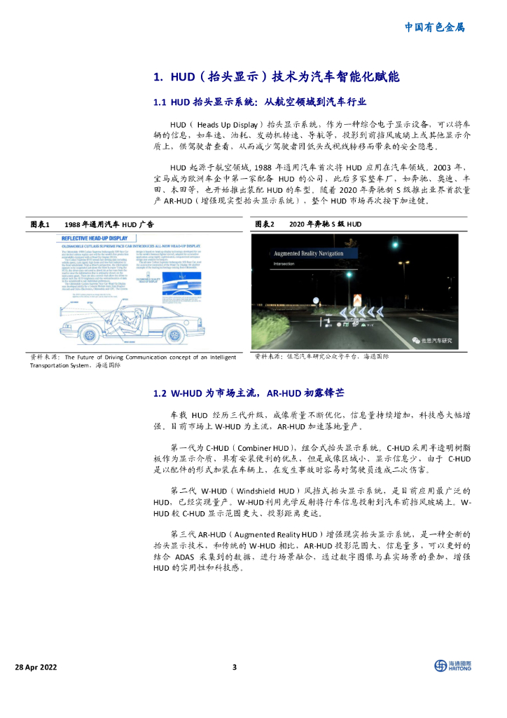 海通国际:中国有色金属:抬头显示(HUD)技术:赋能智能驾驶,加速放量正当时.pdf