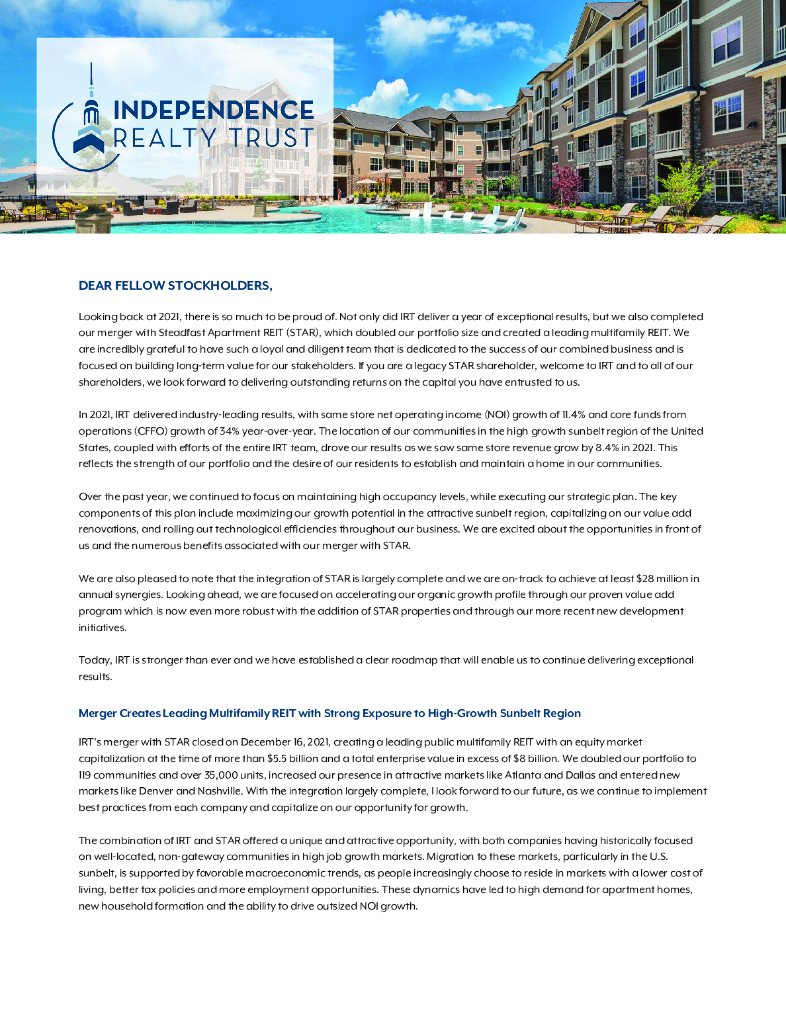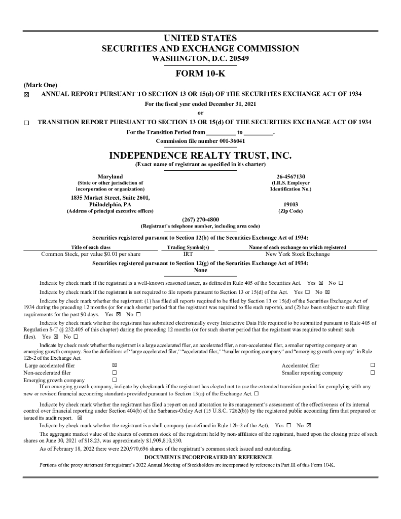Independence Realty Trust Inc(IRT)2021财年年度报告(英文版).pdf