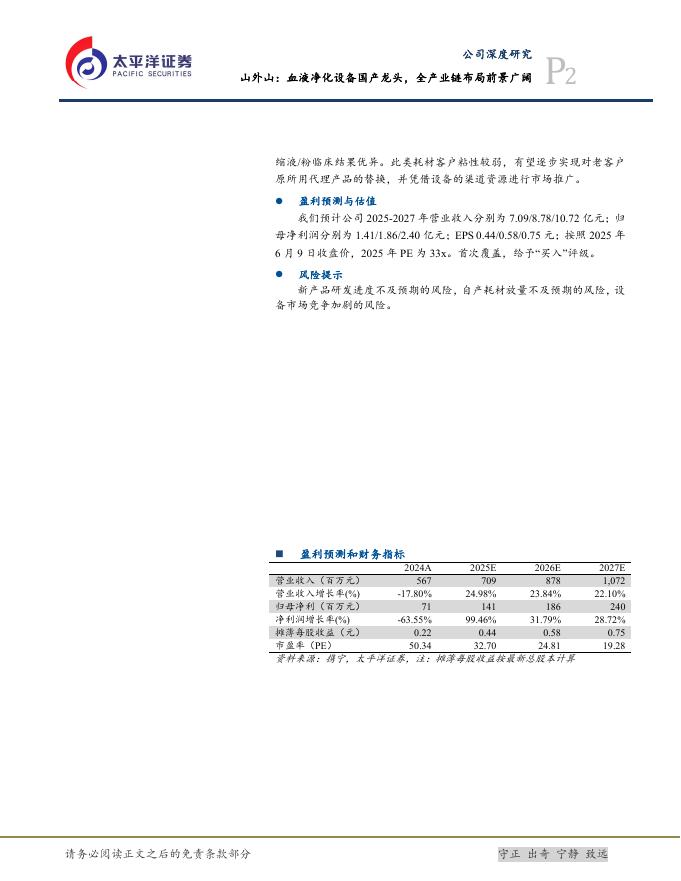 太平洋证券:山外山(688410)——血液净化设备国产龙头,全产业链布局前景广阔.pdf