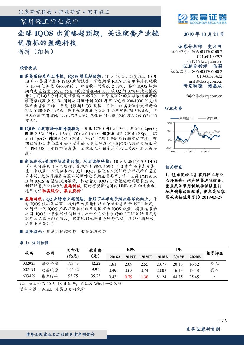 东吴证券:家用轻工行业点评:全球IQOS出货略超预期,关注配套产业链优质标的盈趣科技.pdf