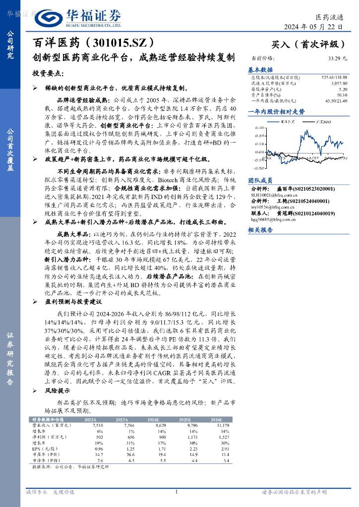 华福证券:百洋医药(301015)-创新型医药商业化平台,成熟运营经验持续复制.pdf