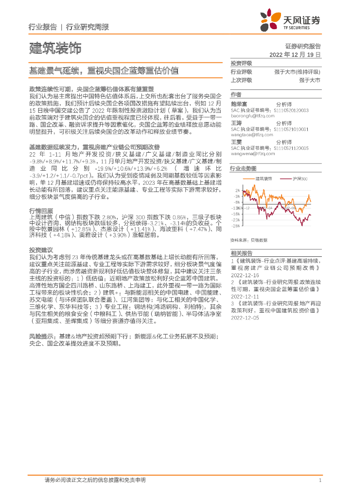 天风证券:建筑装饰行业研究周报:基建景气延续,重视央国企蓝筹重估价值.pdf