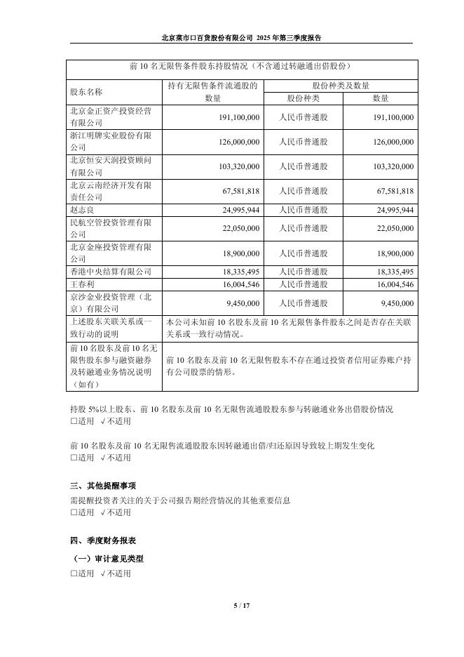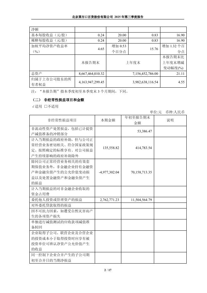 605599-菜百股份:北京菜市口百货股份有限公司2025年第三季度报告.pdf