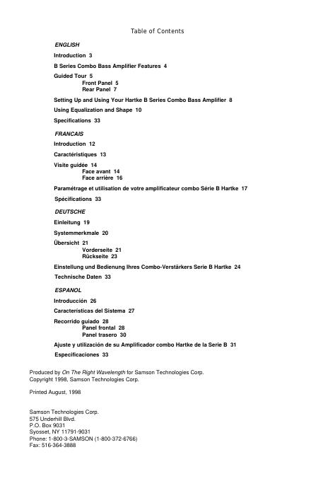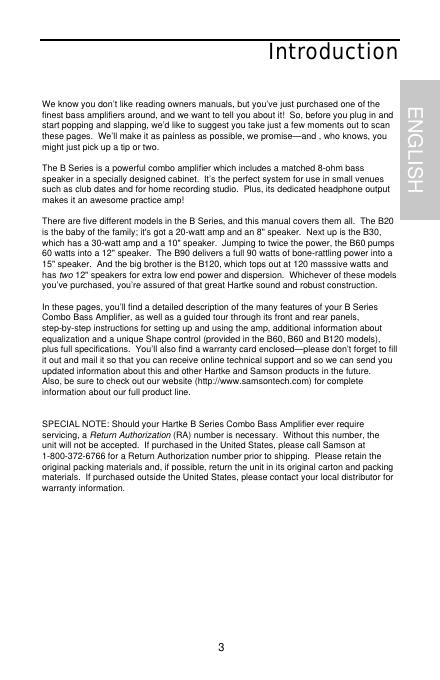 Hartke B SERIES BASS COMBO 用户手册.pdf