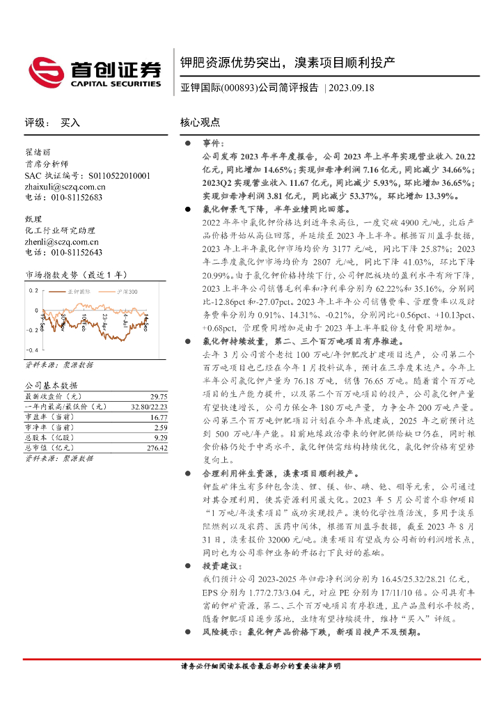 首创证券:亚钾国际(000893)-公司简评报告:钾肥资源优势突出,溴素项目顺利投产.pdf
