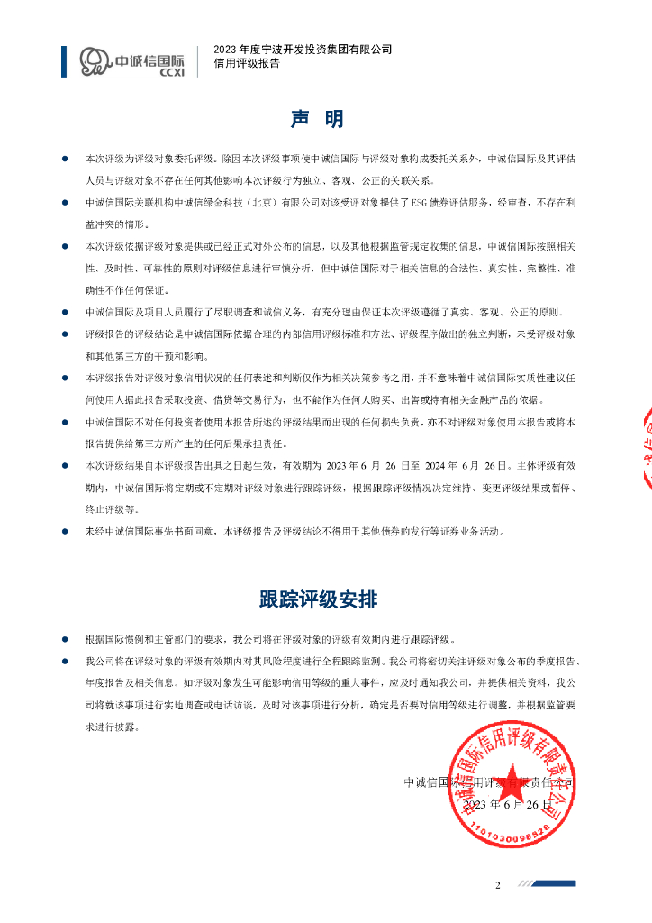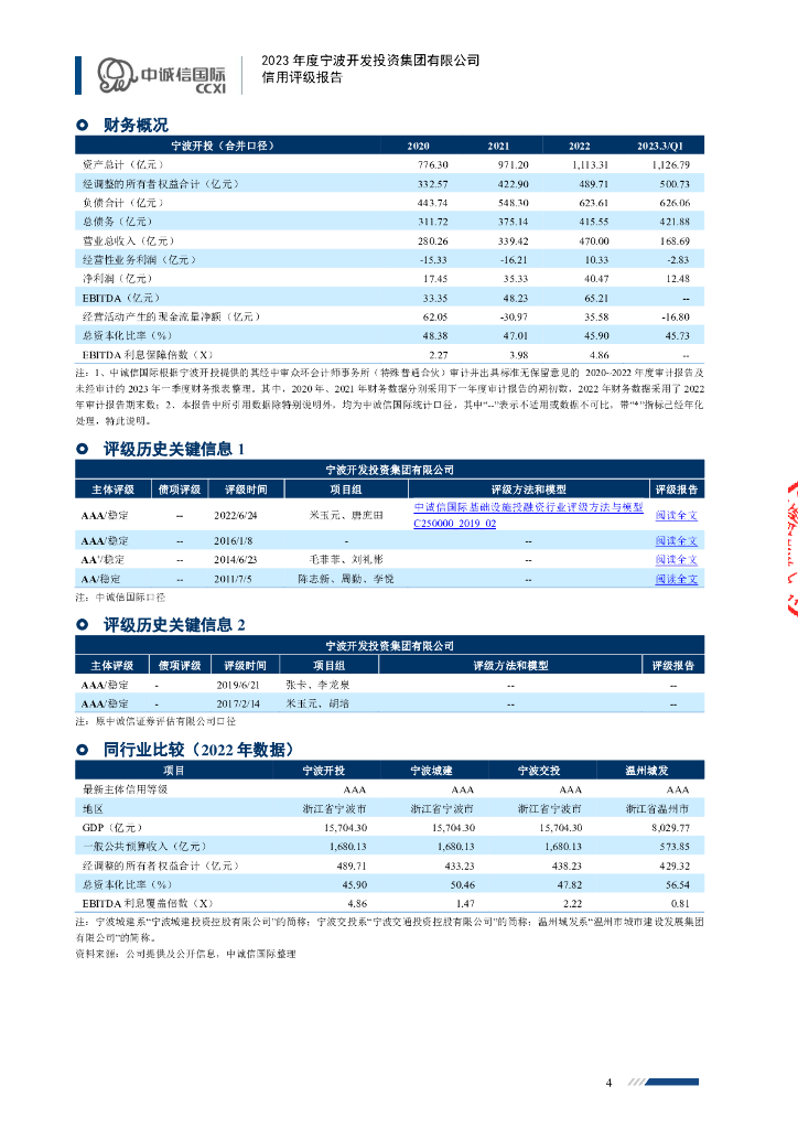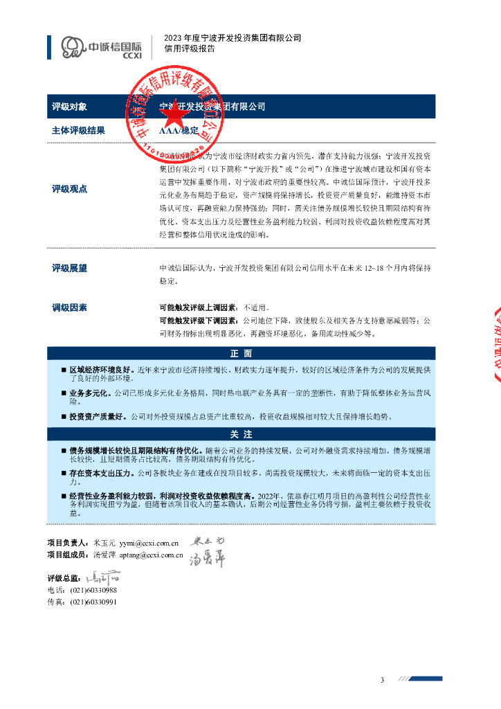 中诚信:2023年度宁波开发投资集团有限公司信用评级报告.pdf