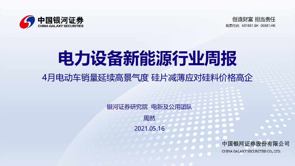 中国银河:电力设备新能源行业周报:4月电动车销量延续高景气度 硅片减薄应对硅料价格高企.pdf