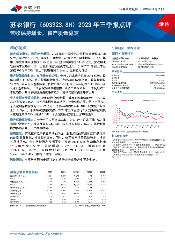 国信证券:苏农银行(603323)-2023年三季报点评:营收保持增长,资产质量稳定.pdf