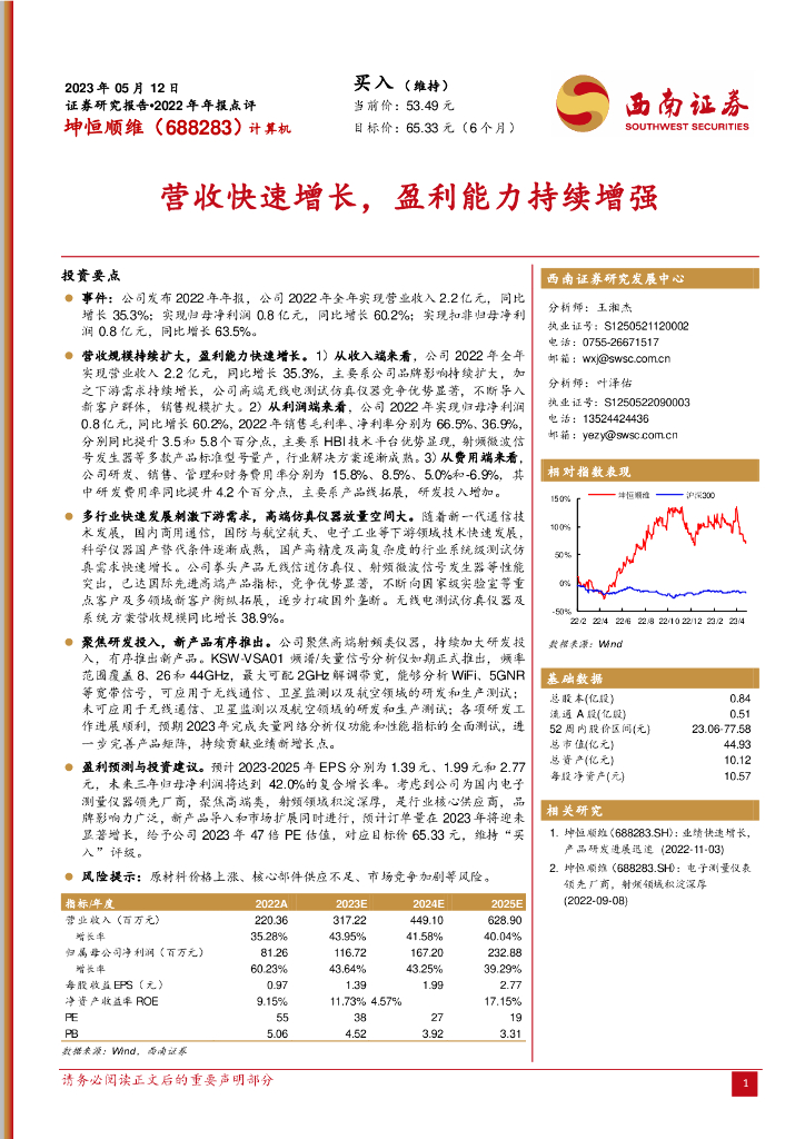 西南证券:坤恒顺维(688283)-营收快速增长,盈利能力持续增强.pdf