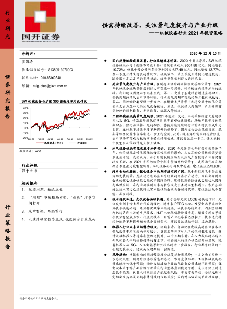国开证券:机械设备行业2021年投资策略:供需持续改善,关注景气度提升与产业升级.pdf