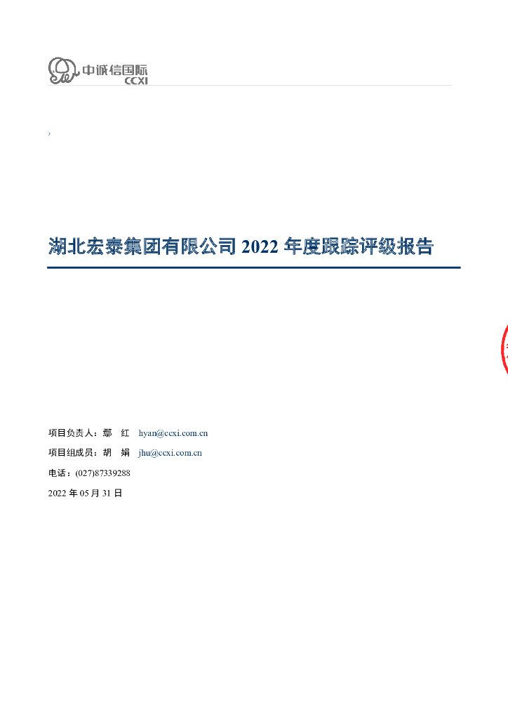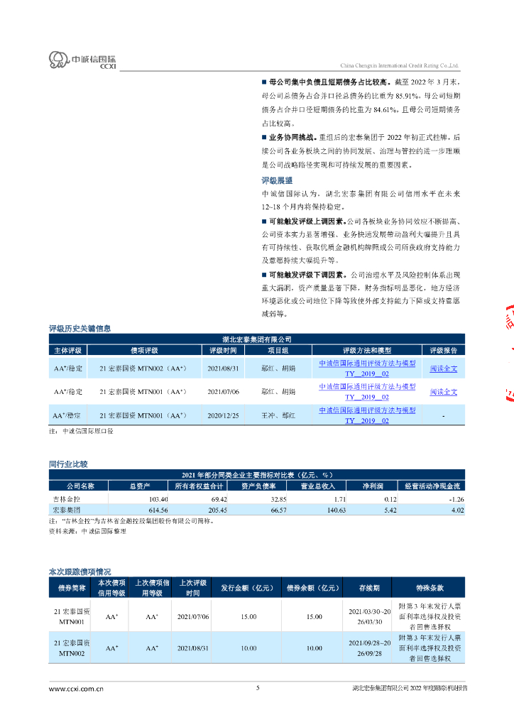 中诚信:湖北宏泰集团有限公司2022年度跟踪评级报告.pdf