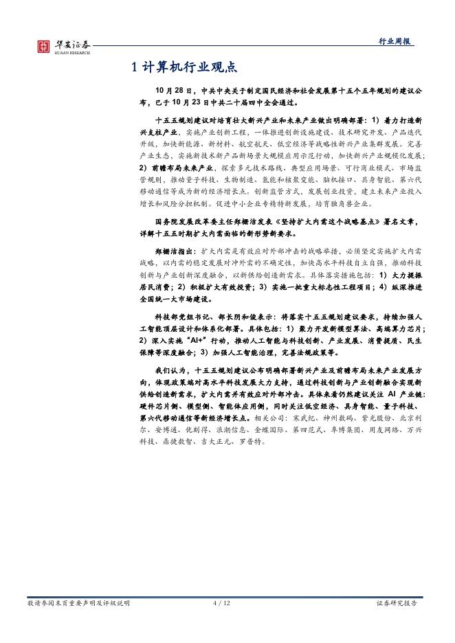 华安证券:全球科技(计算机)行业周报:十五五规划建议明确新兴产业,前瞻布局未来产业.pdf