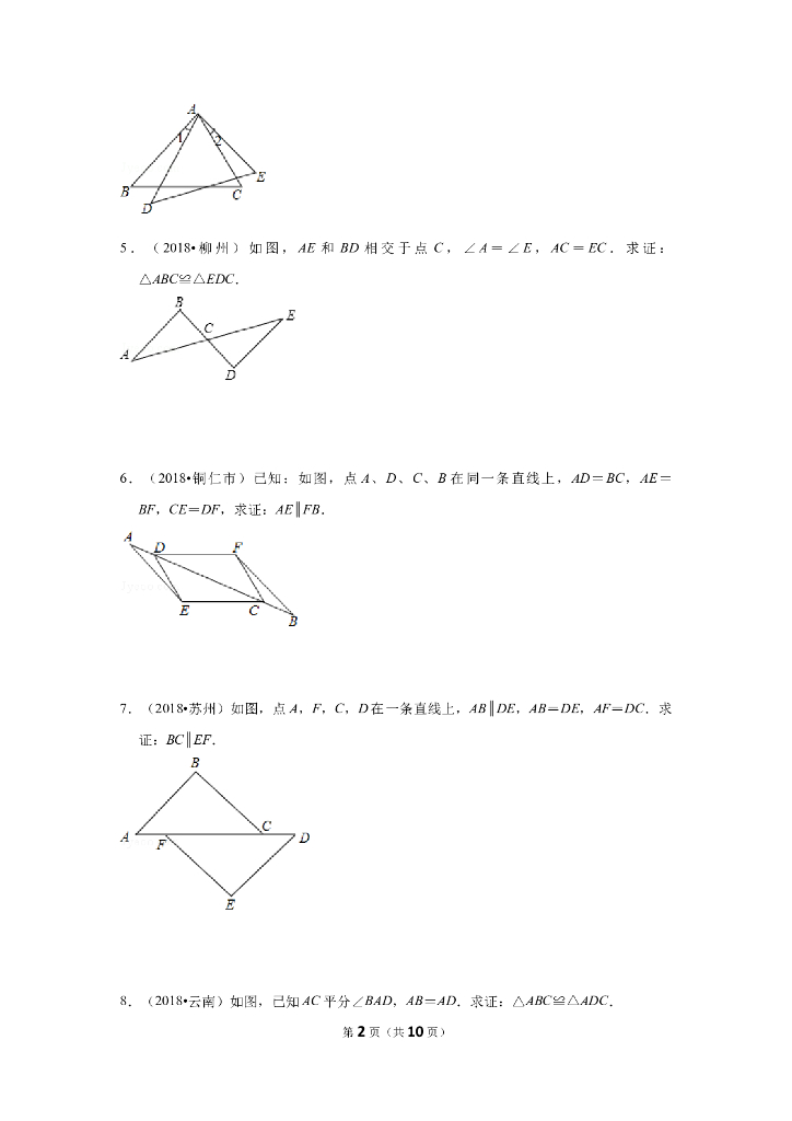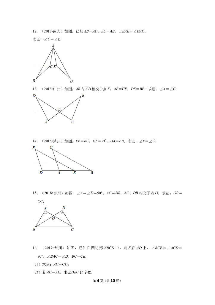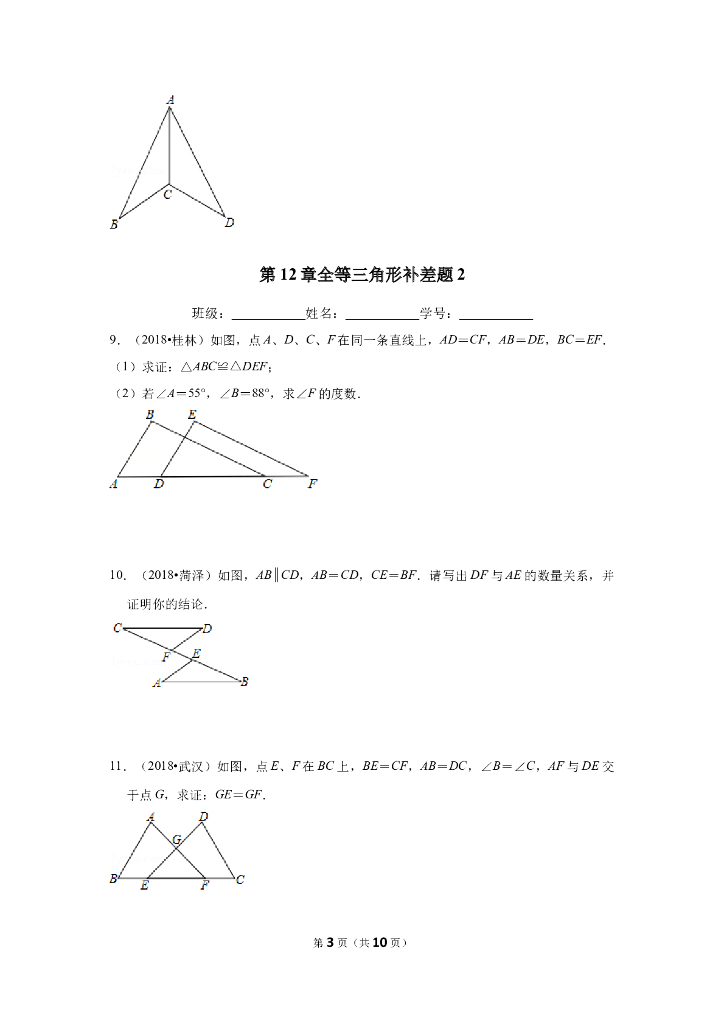 人教版数学中考复习第12章全等三角形补差题1-2附答案.doc