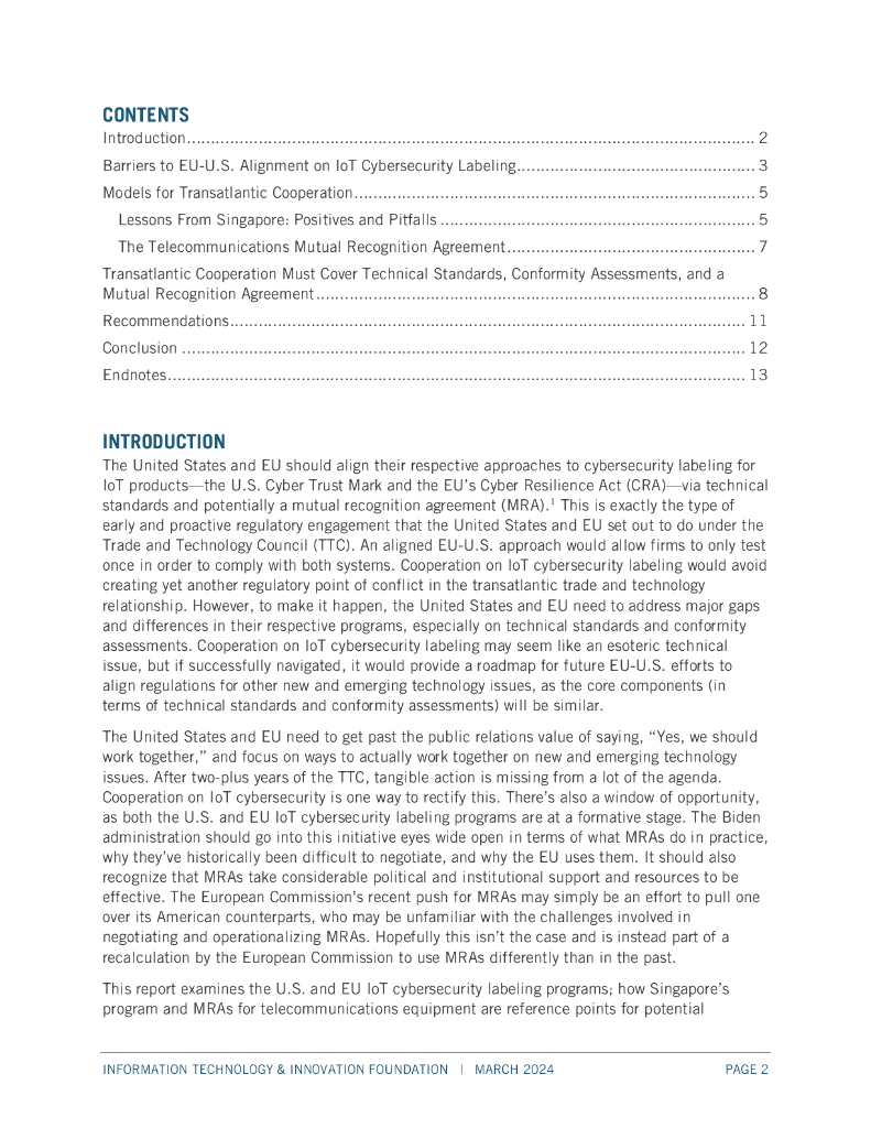 ITIF:2024年为什么美国和欧盟应该抓住时机在物联网设备的网络安全标签方面进行合作报告(英文版).pdf