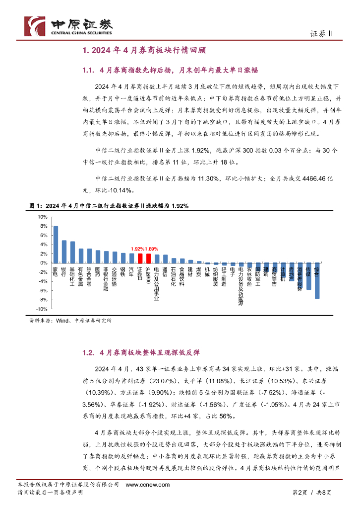 中原证券:证券行业券商板块月报:券商板块2024年4月回顾及5月前瞻.pdf