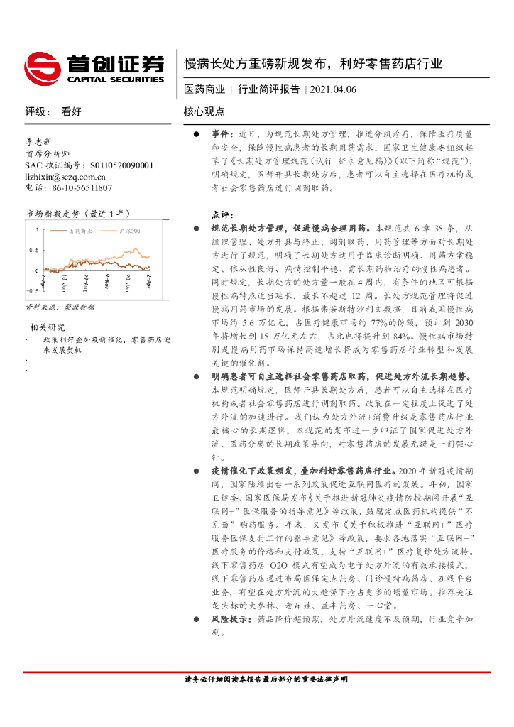 首创证券:医药商业行业简评报告:慢病长处方重磅新规发布,利好零售药店行业.pdf