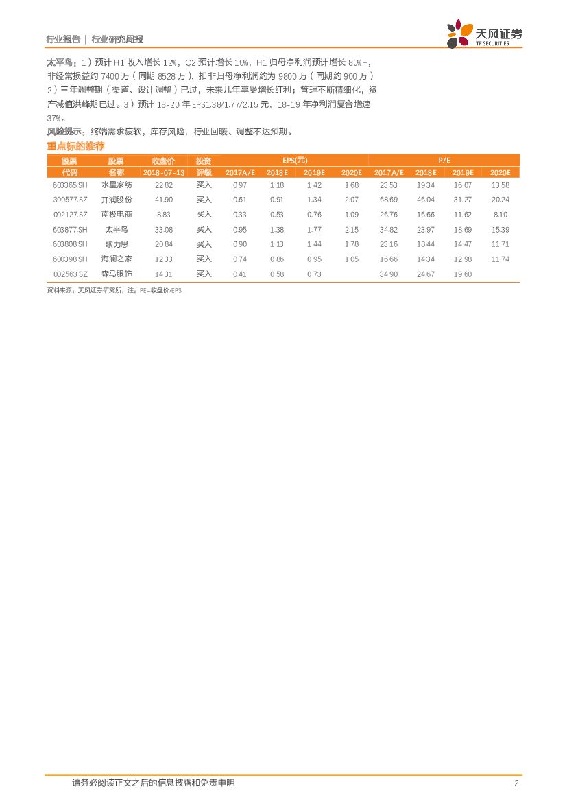 天风证券:纺织服装行业研究周报:开润股份18H1业绩略超预期,反弹继续推荐长期增长组合.pdf